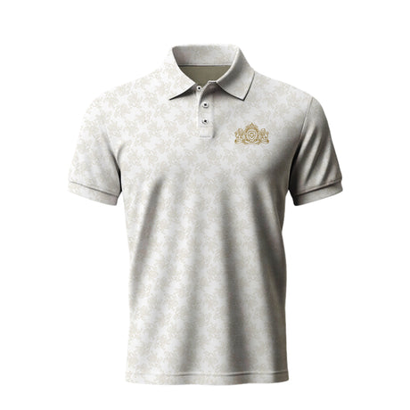 $74.99 USDUnit price /UnavailableLow stock (19 units)Future Looks Bright Royal Crest Allover Print Ivory and Gold Polo (Classic Fit)