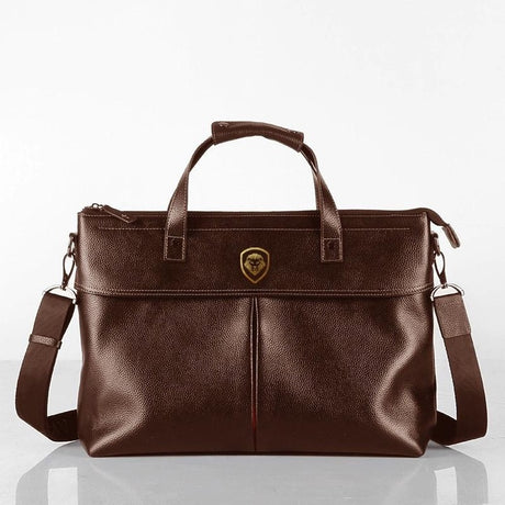Future Looks Bright Lion Shield Brown Leather Shoulder Tote Bag