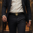 Valuetainment Genuine Leather Black with Gold Lion Shield Buckle Belt