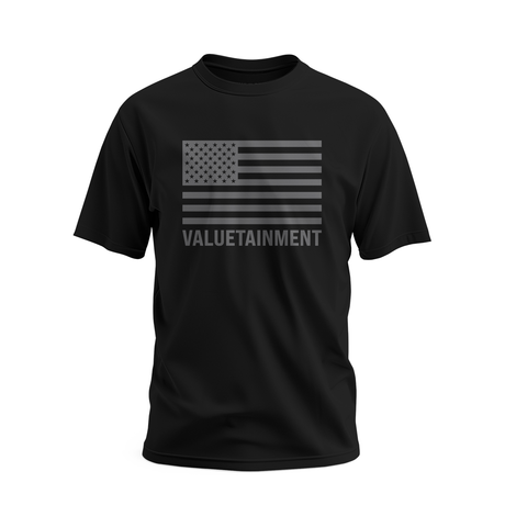 $34.99 USDUnit price /UnavailableValuetainment Oversized Flag Print Black & Grey Performance Short Sleeve T-Shirt